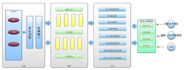 - 大部分行政、经营和事业实体都或多或少有信息化应用,献部分没有覆盖档案管理全过程.电子与实体管理脱节。信息系统产生的大量文件没有和纸质的档案文件相对应,信息的准确性、唯一性和统一性难以保证.最突出的例子就是一份资料难以确保是唯一正确的